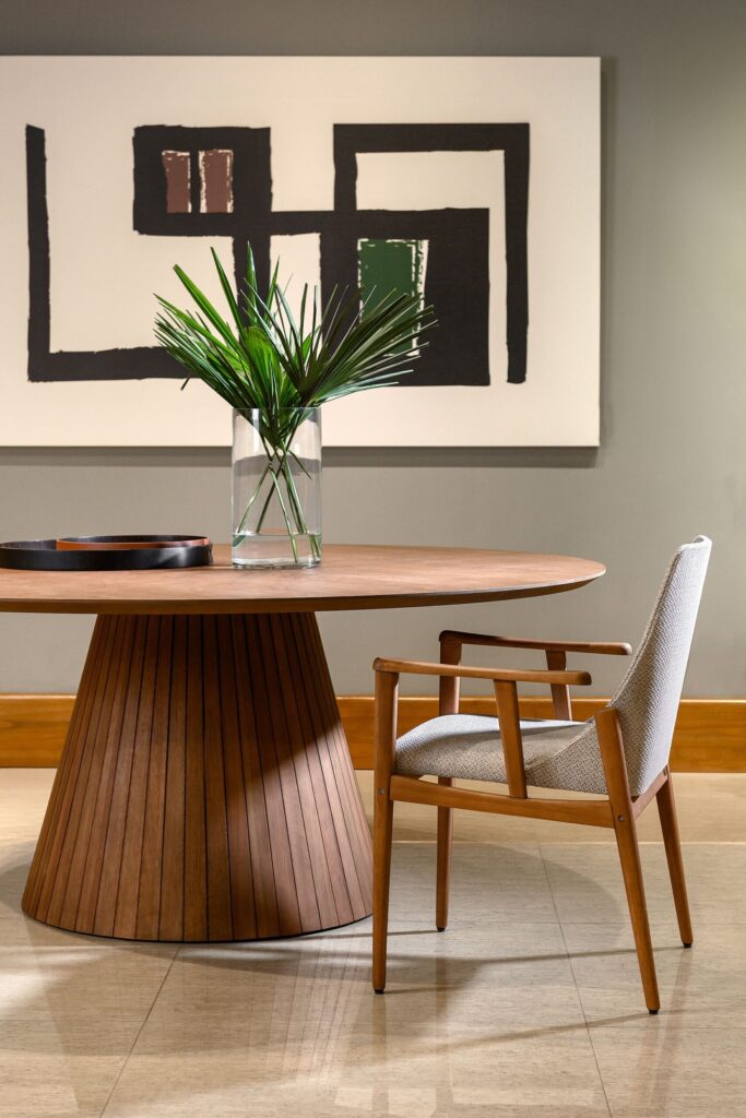 E o mais interessante é que não é preciso reformar a casa inteira para sentir essa mudança. Trocar a lâmpada branca do quarto por uma luz amarela pode melhorar o sono; um móvel de madeira natural pode despertar memórias ancestrais de aconchego; tecidos como linho e algodão, acabamentos em couro ou pedras brutas nos conectam com o que é real, com o que é humano. Às vezes, basta um detalhe para transformar a energia de todo o ambiente.